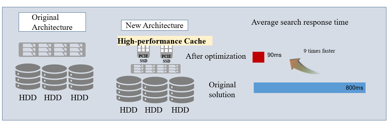 For this e-commerce platform, users' experience in using the platform affects the size of customer flow and plays an important role in the overall business operation, while the waiting time in searching data is the first threshold of user experience. With the adoption of the DSSD solution developed by Union Memory, the average search response time reduced greatly, and is 9 times faster than before, thus optimizing the user experience and improving the user dependency.