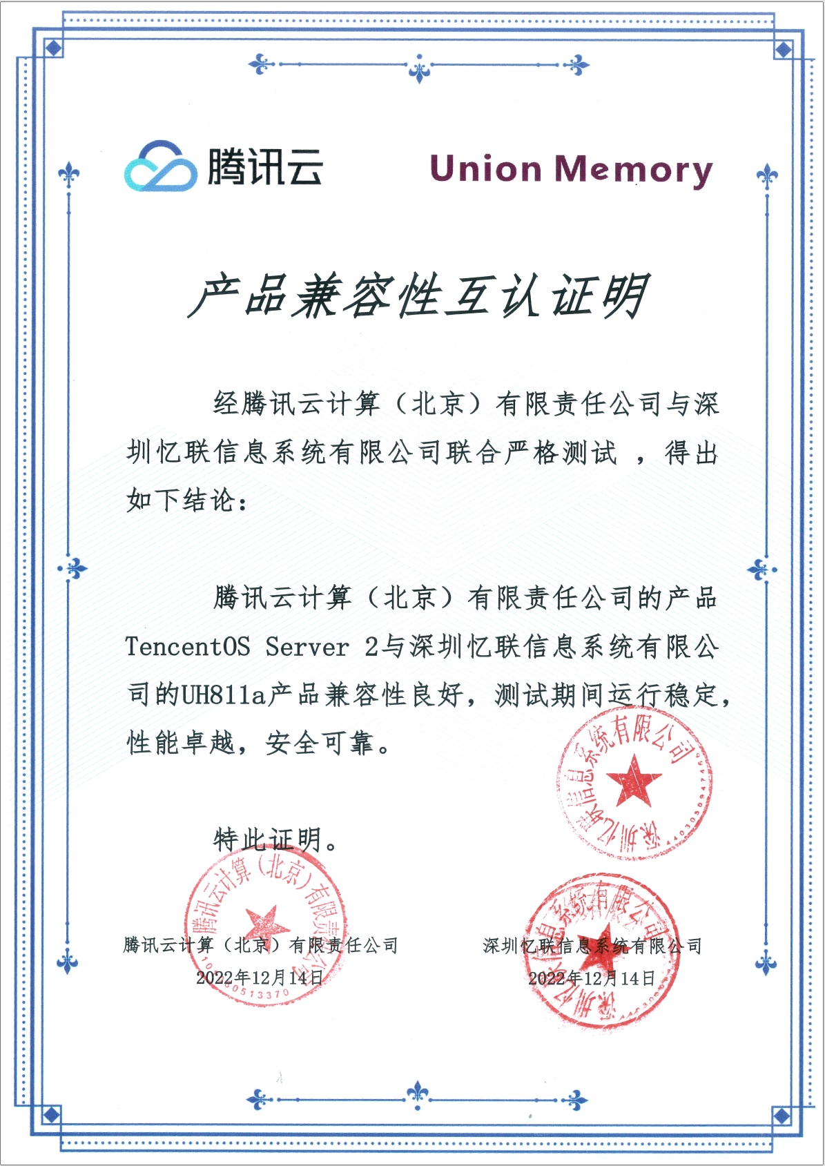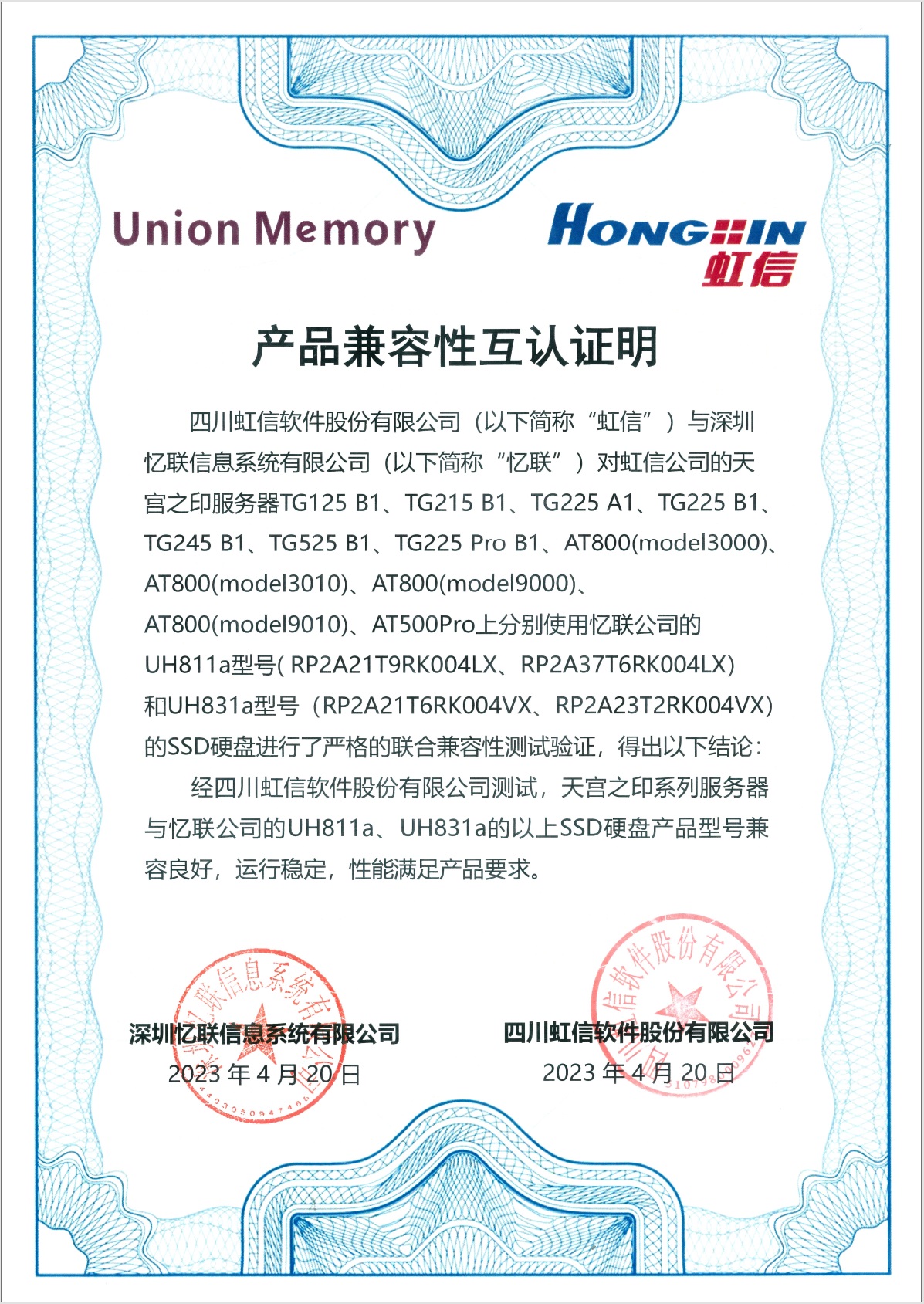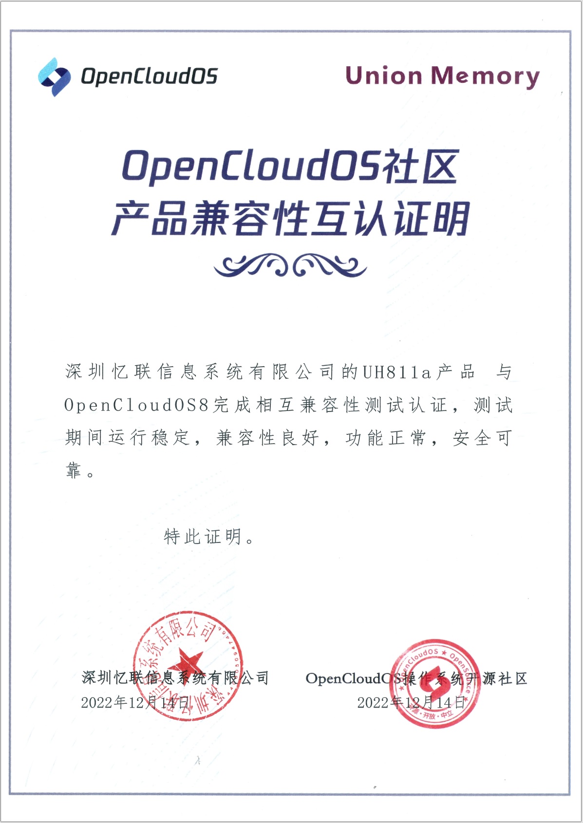 • UH711a‘s Certify...
