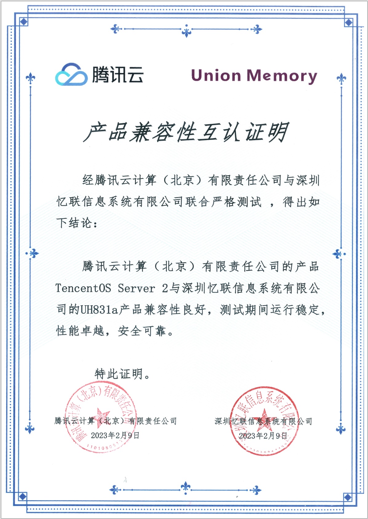 • UH831a`s Certify...