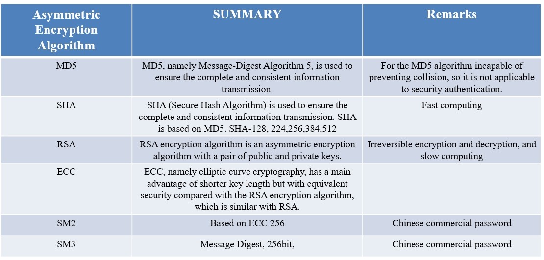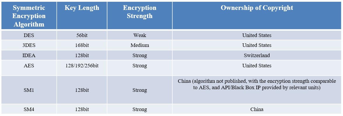 At present, the mainstream symmetric encryption algorithms are as follows: