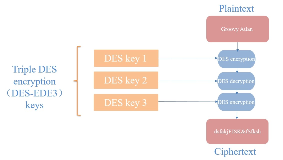·3DES: Literally, it is the process of DES encryption for three times, which is an enhanced version of DES.