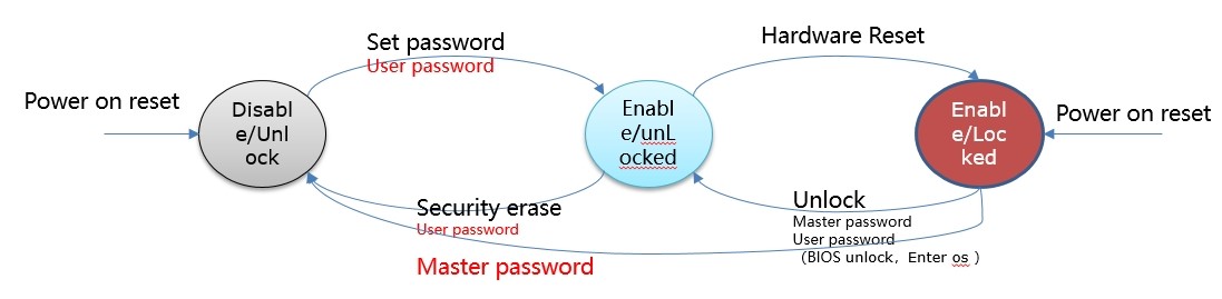 ·Master password: Administrator password, only used to unlock the User Password without locking the hard disk; the Master password does not enable SSD security.