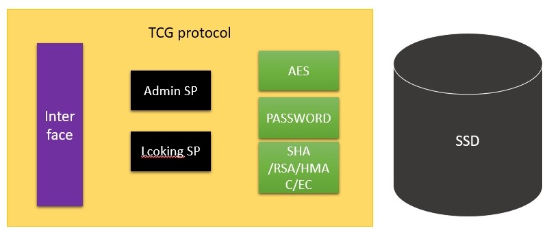 In TCG, the part related to SSD is the TCG Storage protocol.
