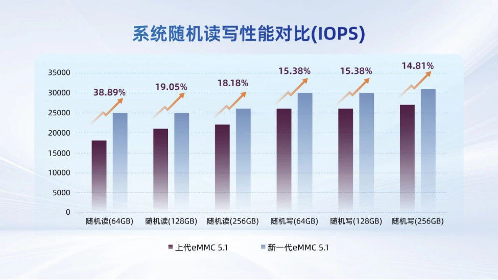 Figure 1: Intergenerational performance comparison of Union Memory’s eMMC 5.1 products