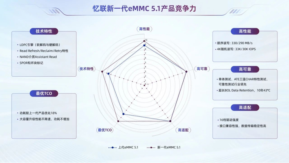 Facing the dual demands for increased storage capacity and improved energy efficiency driven by the evolution toward ultra-high-definition and highly interactive intelligent terminals, Union Memory’s new- generation eMMC 5.1 products have emerged just in time, to address market pain points with the following three core competitive advantages.
