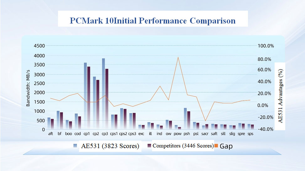 Figure: PCMark 10 Score Comparison – Union Memory’s AE531 vs. Competitors