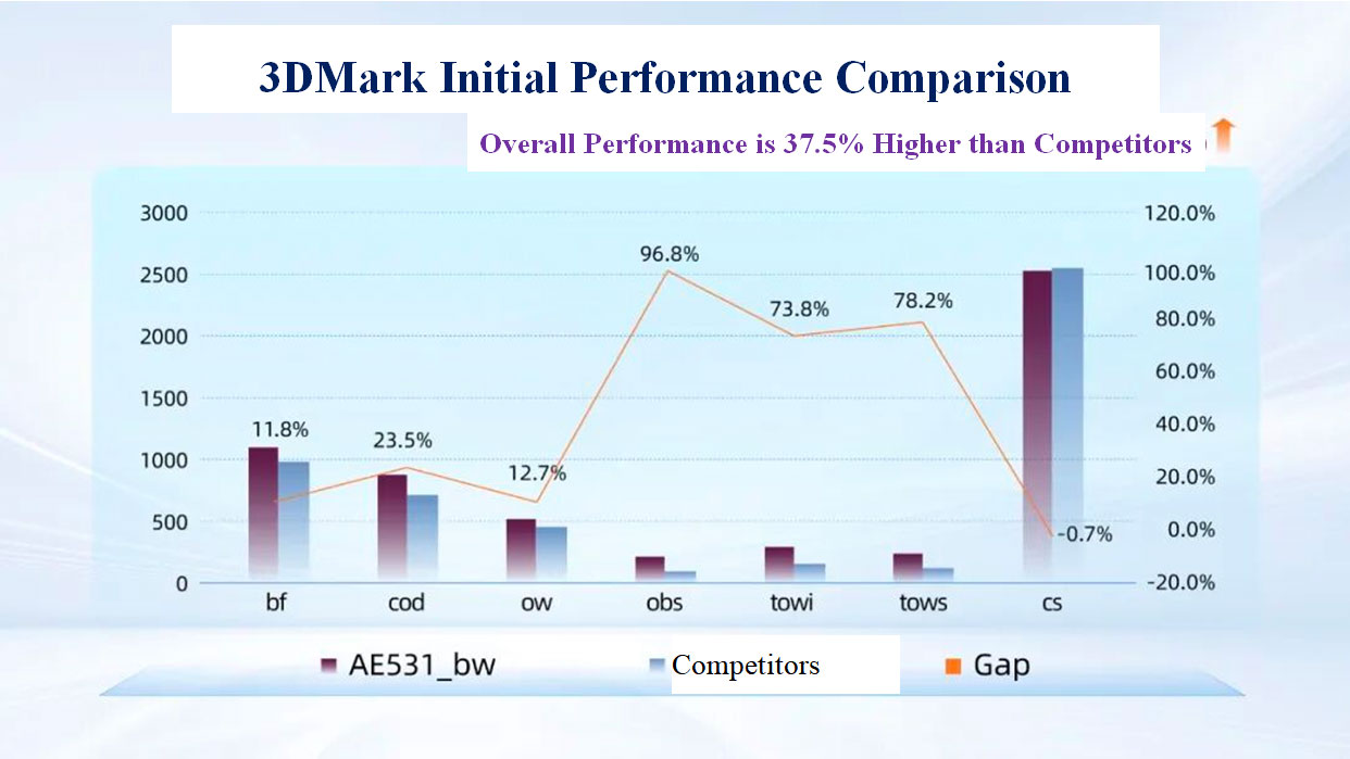 Excellent performance in test results shows that in the 3DMark storage benchmark test, the AE531 scores significantly higher than similar QLC competitors by about 37.5%, which means fast and smooth responses in daily applications.