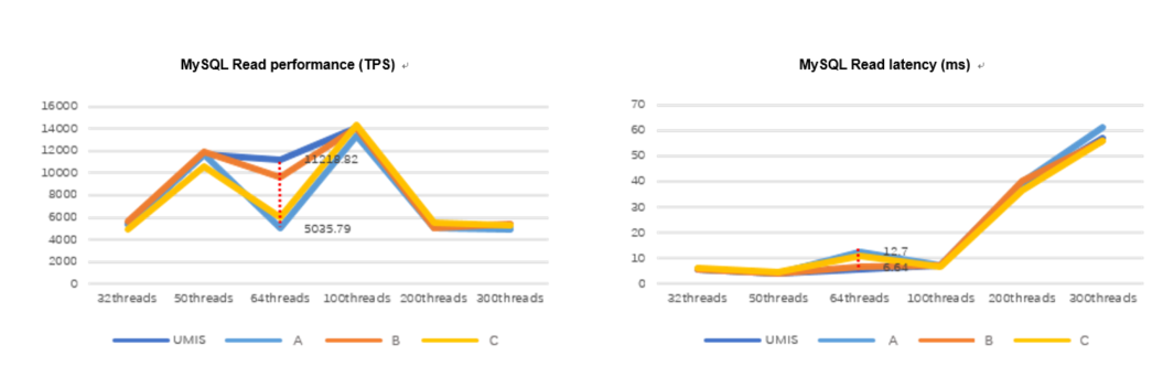Figure 3: Performance comparison between Union Memory's SSD and SSDs of other manufacturers in MySQL read-only scenario